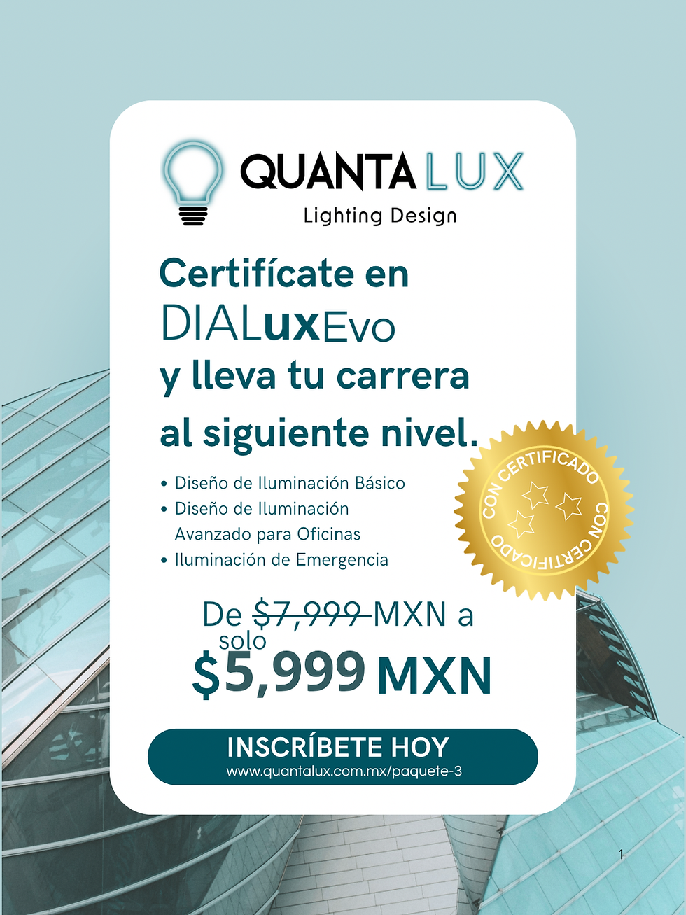 Cert. DIALuxEvo 12 Avanzado Diseño de Iluminación Oficinas